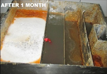 Setelah aplikasi rutin dengan Produk Biobug terlihat lapisan lemak keras dari dinding grease trap menjadi lembut terurai, pembersihan menjadi lebih mudah, akumulasi lemak menggumpal berkurang, sehingga aliran air pun menjadi lancar, pipa pun menjadi lebih bersih.