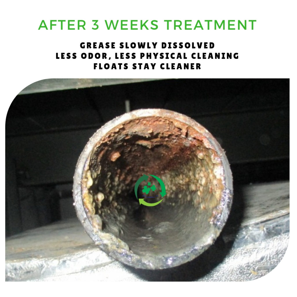 Setelah rutin treatment dengan produk Biobug, pada pengecekan sebulan berikutnya tidak ada lemak menggumpal, karena lemak menjadi bubur mudah terdorong oleh aliran air, dan bau yang jauh berkurang, tidak ada lagi kendala mampet dan operasional yang terganggu.