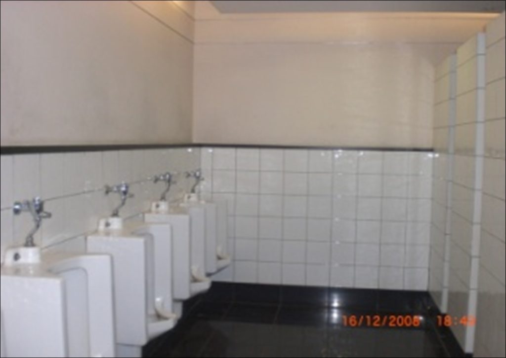 Desember 2018 - di sebuah ruang restroom toilet pria di pasar Tanah Abang, dikeluhkan problem bau tidak sedap saat di flushing, dan air yang lambat turun.